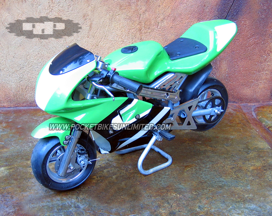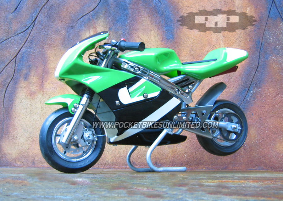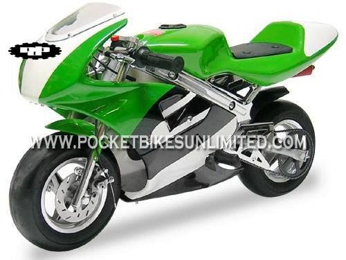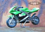| Everything is adjustable to custom fit each rider including air pressure, throttle and brake responsiveness, handlebar height and angle along with foot placement. This pocket bike comes fully assembled and includes everything you need to start riding immediately. Stickers are also included for you to customize the look of your pocket rocket. Our bikes are the original Daytona models with the highest quality construction. Look at our pictures above and compare them to the imitations and you will see that our pocket bikes are built to last longer and go faster! $449.00 ALL COLORS |