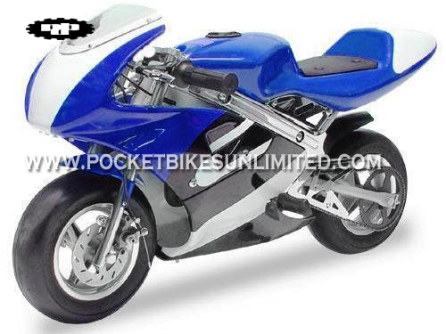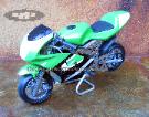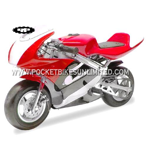 | These 47cc Cagllari Daytona pocket bikes Out-perform much more expensive pocket rockets, the Cagllari Daytona bikes feature durable alloy construction and a potent high output 2-stroke gas motor. Its lightweight, no frills design and construction makes the Cagllari a favorite among top racers and enthusiasts alike. The full fairing design gives these pockets the super bike look. |